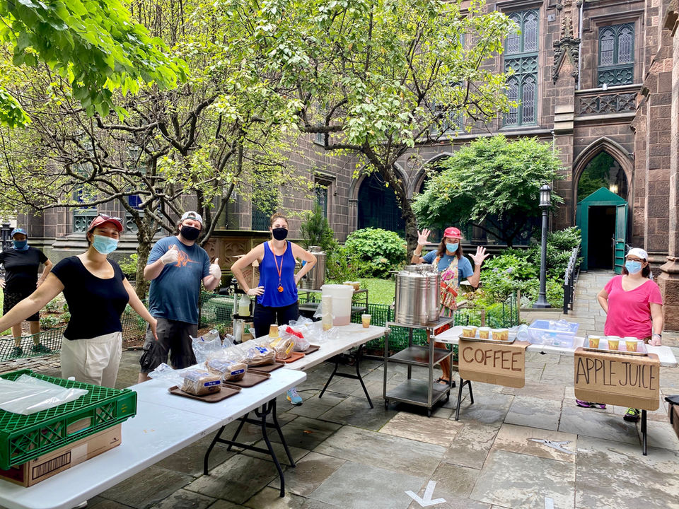 St. Joe’s operates a weekly, Saturday soup kitchen at First Presbyterian, located in the Greenwich Village section of New York City. The Soup Kitchen’s doors open to the all-volunteer staff at 10:30 a.m. The staff prepares meals, which typically consist of an entrée with a protein and a starch, a side salad, fruit cup, bread and butter, coffee, milk, and sometimes a dessert. On average, we’re able to serve an entire tray of food for only $2. The staff works within accepted nutritional guidelines to ensure that well-rounded, nutritional meals are prepared.